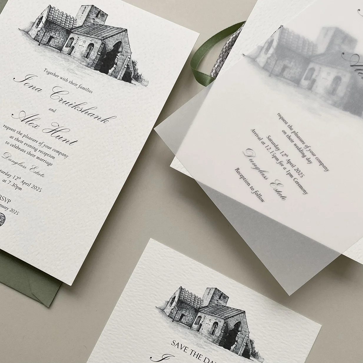 Venue illustrations are a beautiful way to customise your wedding stationery.
